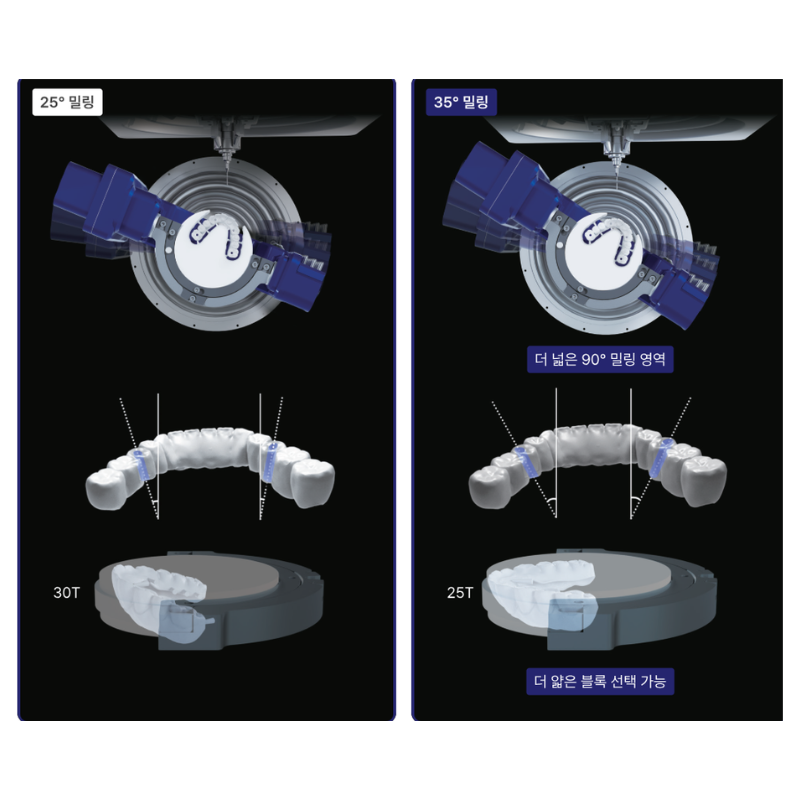 Чрез завъртане на B-оста до 35°, CRAFT 2 осигурява отличен достъп до сложни геометрии и дълбоки подмолни участъци (undercuts), както и прецизни резултати при обработка на цялостна дъга (full-arch).